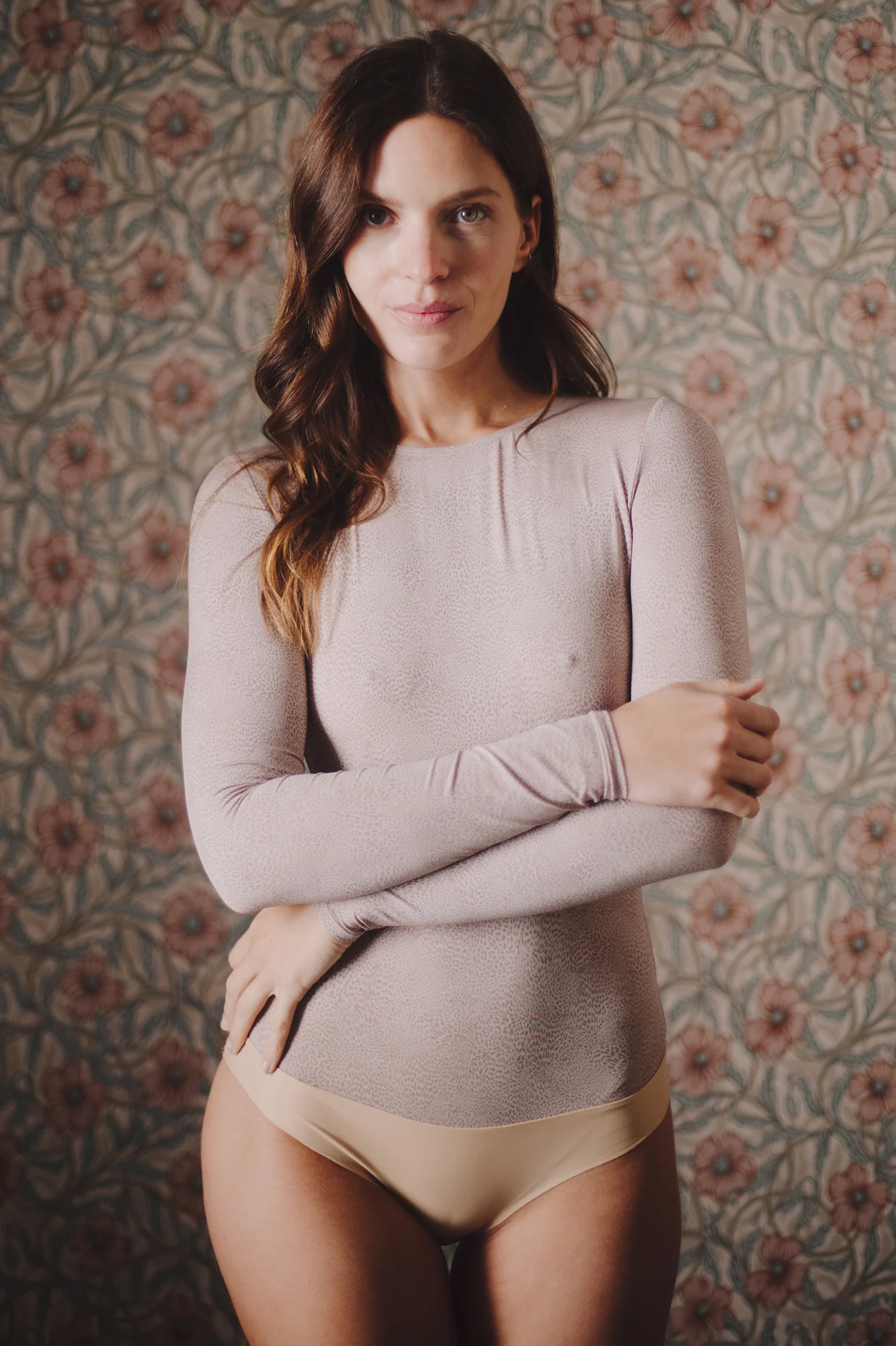 Féminin et audacieux, le body Camille léopard joue la carte de la seconde peau. Sa maille délicate rehaussée d’un subtil imprimé léopard rosé joue avec la transparence et souligne les courbes. Devant, un décolleté sobre à la ligne graphique ; au dos, une ouverture vertigineuse qui dévoile juste ce qu’il faut. Signature de la maison, la culotte en microfibre sans couture assure un confort absolu et une invisibilité parfaite sous tous vos bas.